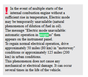 I’ve seen the electric mode not available message when there’s no traction charge left but this is the first time I’ve seen this message, that mentions “Automatic Operation In Progress”, what does this refer to ?